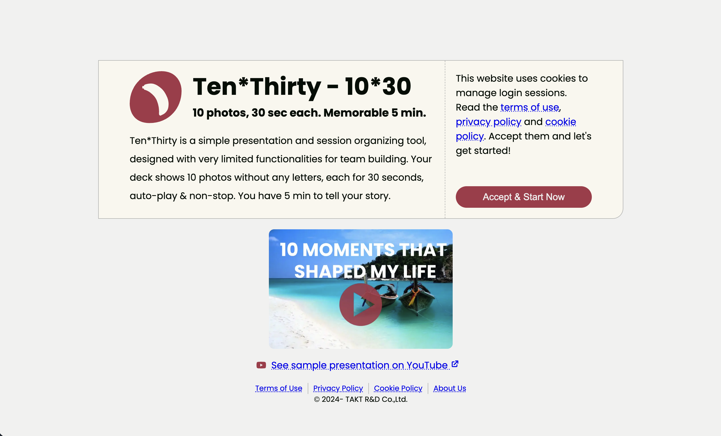 Ten*Thirty helps you to know each other better in a short time, with 10 photos, 30 seconds each. No text. It will be memorable 5 minutes.